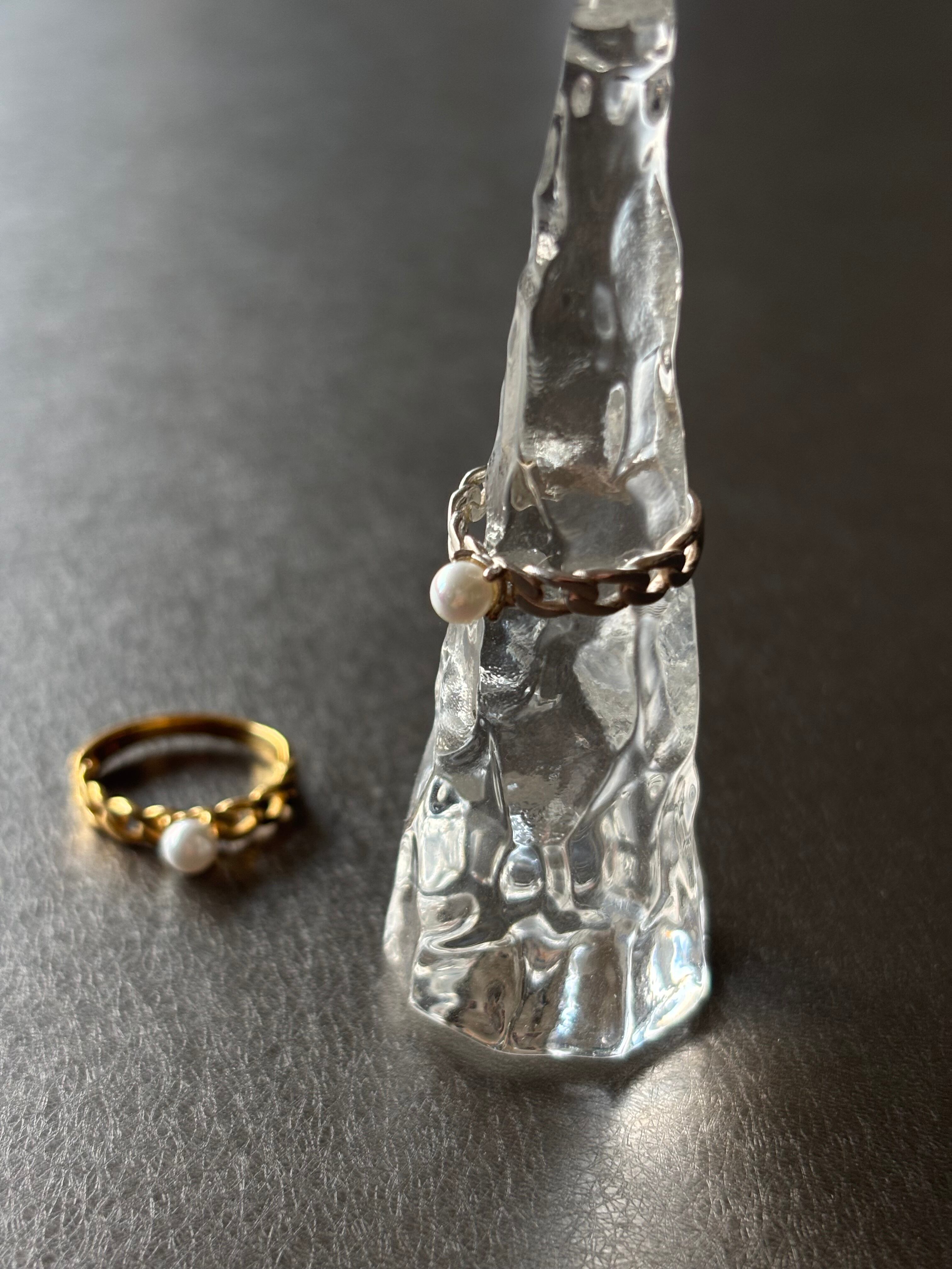ひとつぶパールが可愛いシルバー/ゴールドリング
