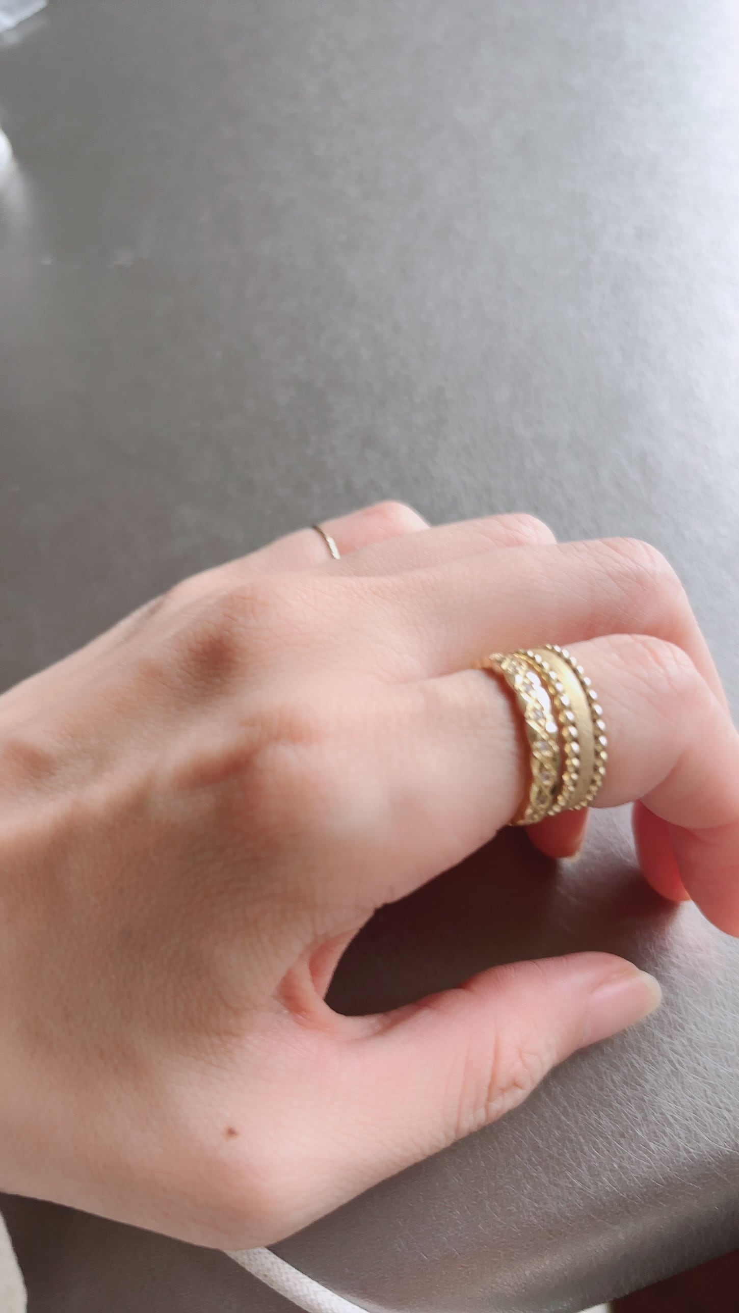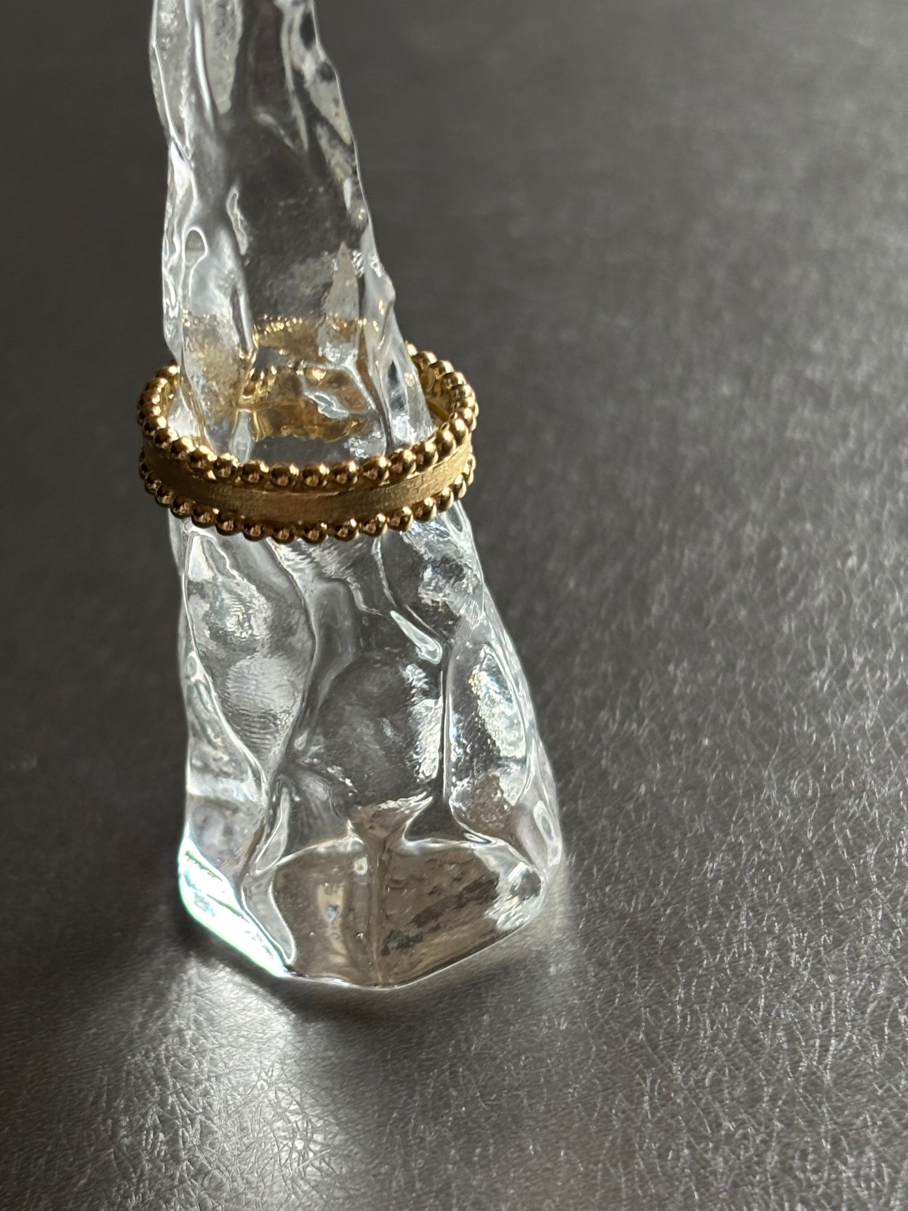 - シンプルなリングにちりばめられた小さな粒々が、可愛らしさを引き立てます。このリングは、重ね付けにぴったりで、他のリングとのコーディネートも楽しめます。どんなスタイルにも馴染みやすく、あなたの指を美しく彩ります!