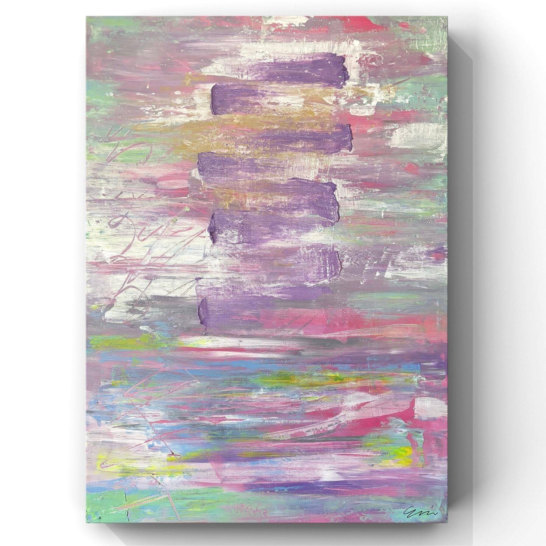 朝霧の中で 寝るはずだった夜、 誰にも言えない妄想で心がいっぱいになって、 気づけば、朝靄の中に光が差し込んでいた— あの静けさと高揚を、そっと閉じ込めた一枚です。 素材 アクリル絵具 サイズ 90*65*18