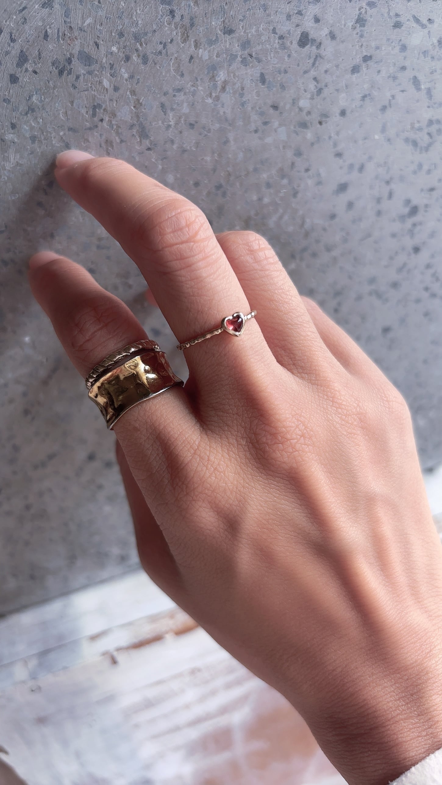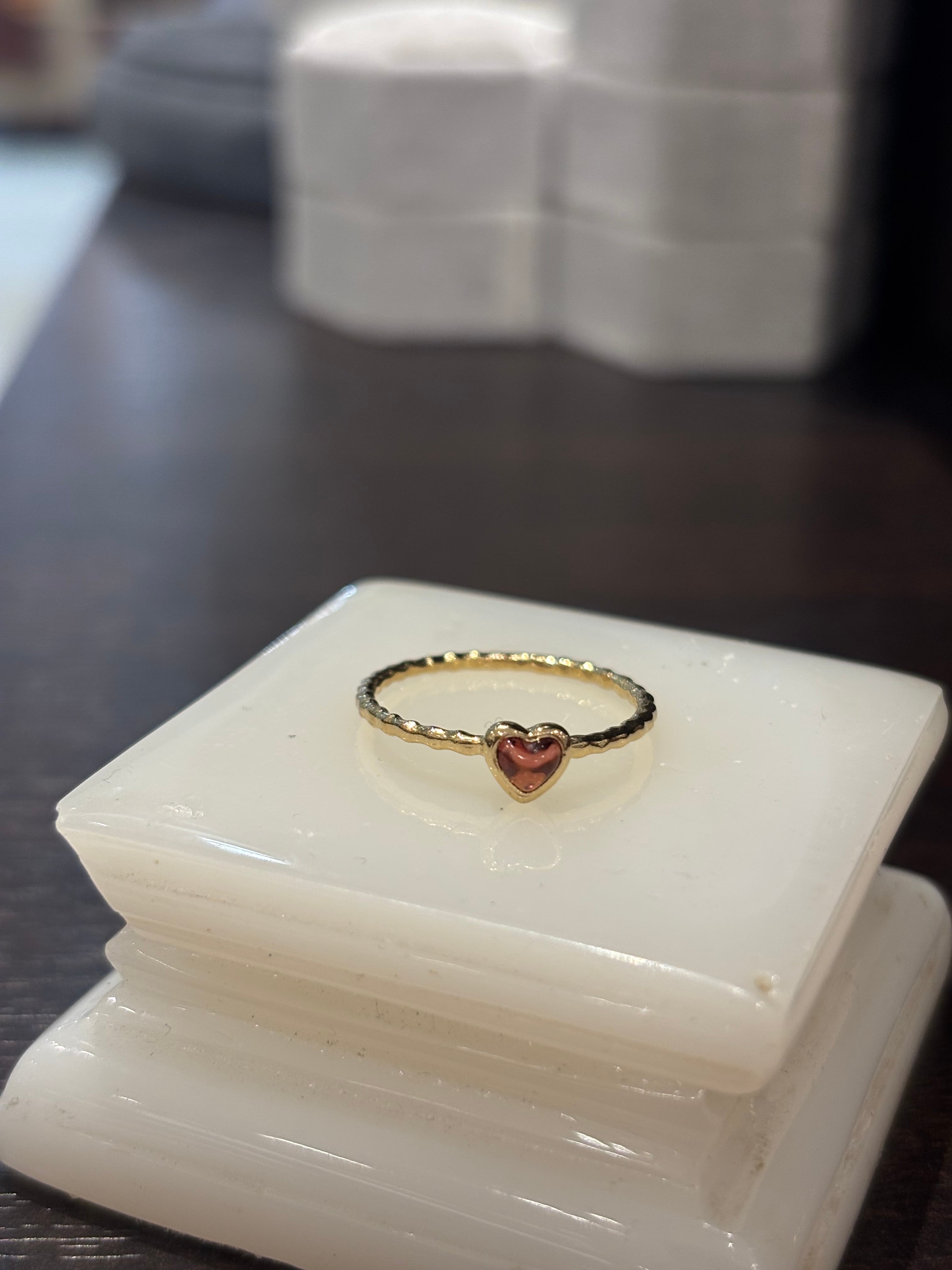 ■ガーネットハートのリング 13号 小さな愛が込められた、特別なリング。ガーネットを使用したハート型のデザインは、シンプルでありながら、その赤い石が持つ深い意味と鮮やかな色合いが魅力的です。このリングは、指元に控えめながらも温かみのある存在感を与え、様々なシーンにフィットします。 このガーネットハートのリングは、日常のおしゃれにさりげなく彩りを添えるとともに、特別なシーンでその魅力を発揮し、あなたのスタイルを一層引き立てます。赤いガーネットが持つエネルギーは、愛情や情熱の象徴とされ、自分自身へのご褒美や愛する人への思いを伝える贈り物にもぴったりです。心温まるデザインをぜひ手に入れて、毎日をもっと魅力的に彩ってみませんか。