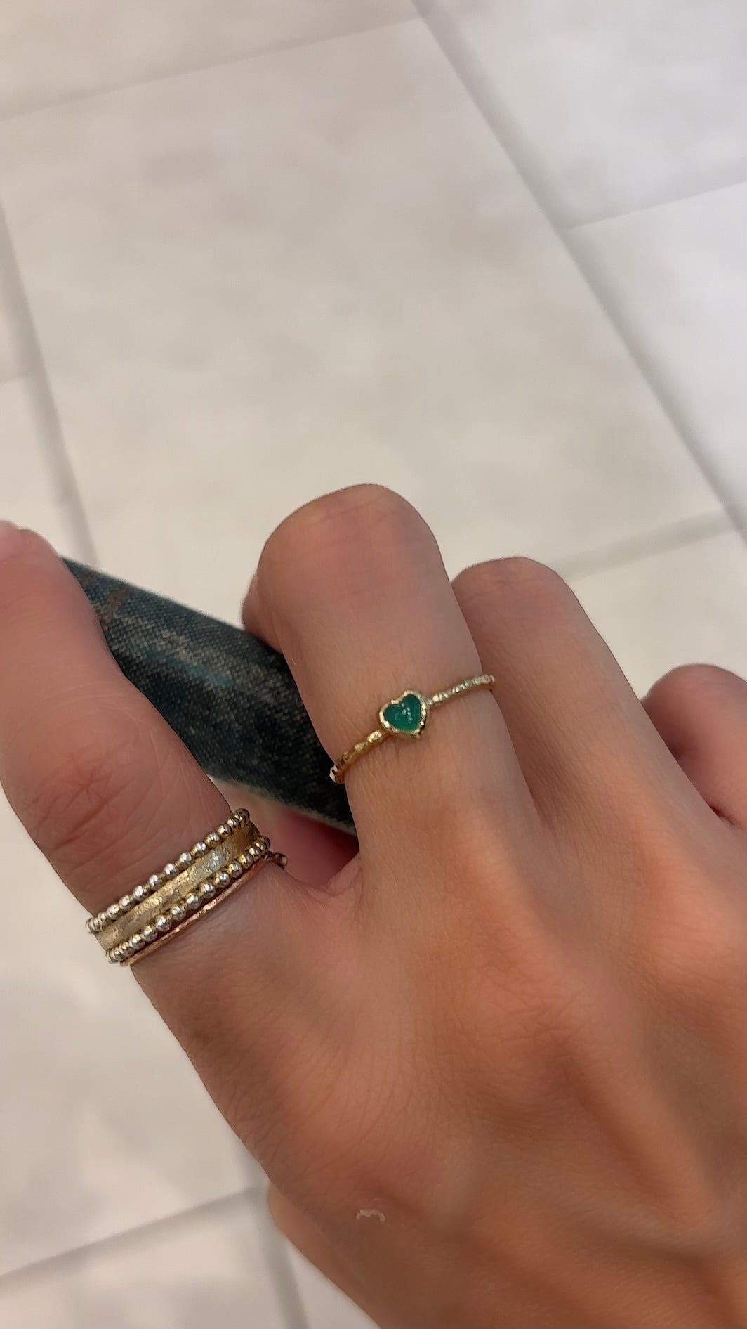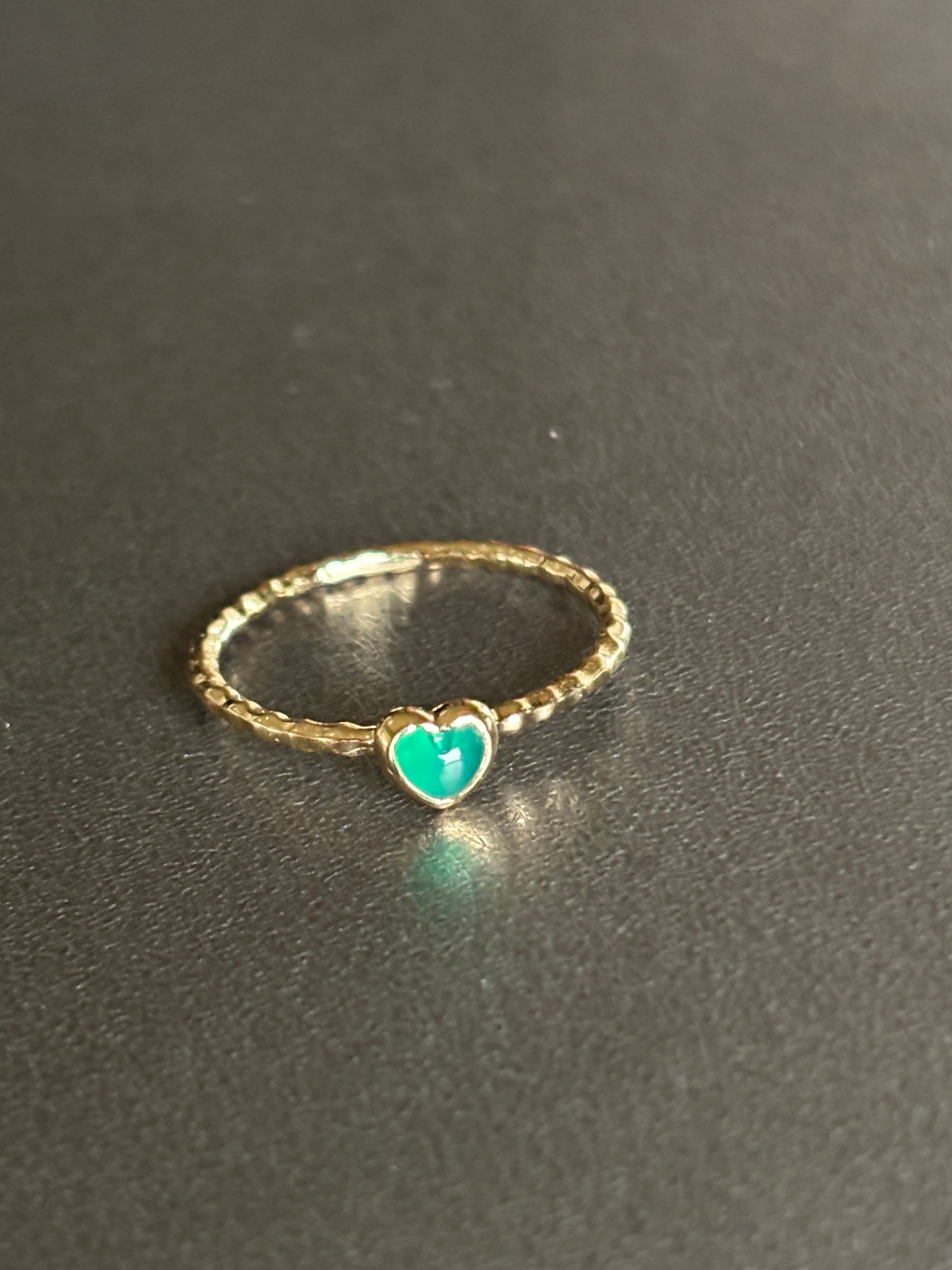小さな愛を宿した、特別なリング。グリーンオニキスを使用したハート型のデザインは、シンプルでありながら、豊かな緑色が持つ癒しのエネルギーと深い意味が魅力です。このリングは、指元に柔らかな存在感を与え、どんなスタイルにも自然にフィットします。 このグリーンオニキスハートのリングは、日常のおしゃれにさりげなく彩りを添えるとともに、特別なシーンでもその魅力を発揮し、あなたのスタイルを一層引き立てます。グリーンオニキスの持つ安心感や調和は、自分自身へのご褒美や愛する人への心を伝える贈り物にもぴったりです。心安らぐデザインをぜひ手に入れて、毎日をもっと特別に彩ってみませんか。