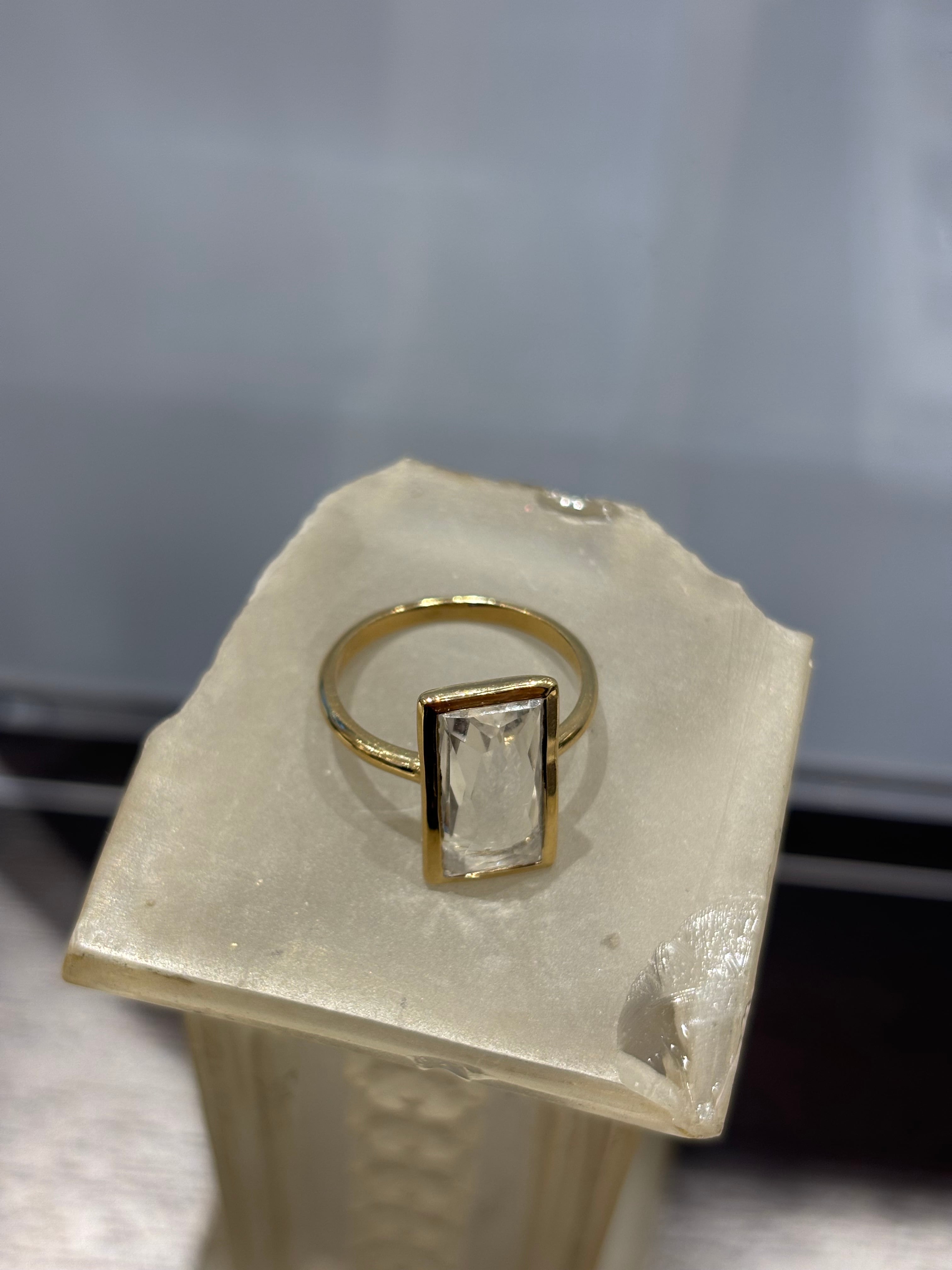 透明感あふれる美しさを持つ、特別なリング。クリスタルを使用したスクエアデザインは、その洗練されたフォルムと清らかな輝きが魅力で、指元にスタイリッシュな存在感を与えます。このリングは、さまざまなスタイルに自然に調和し、あなたの魅力を引き立てます。