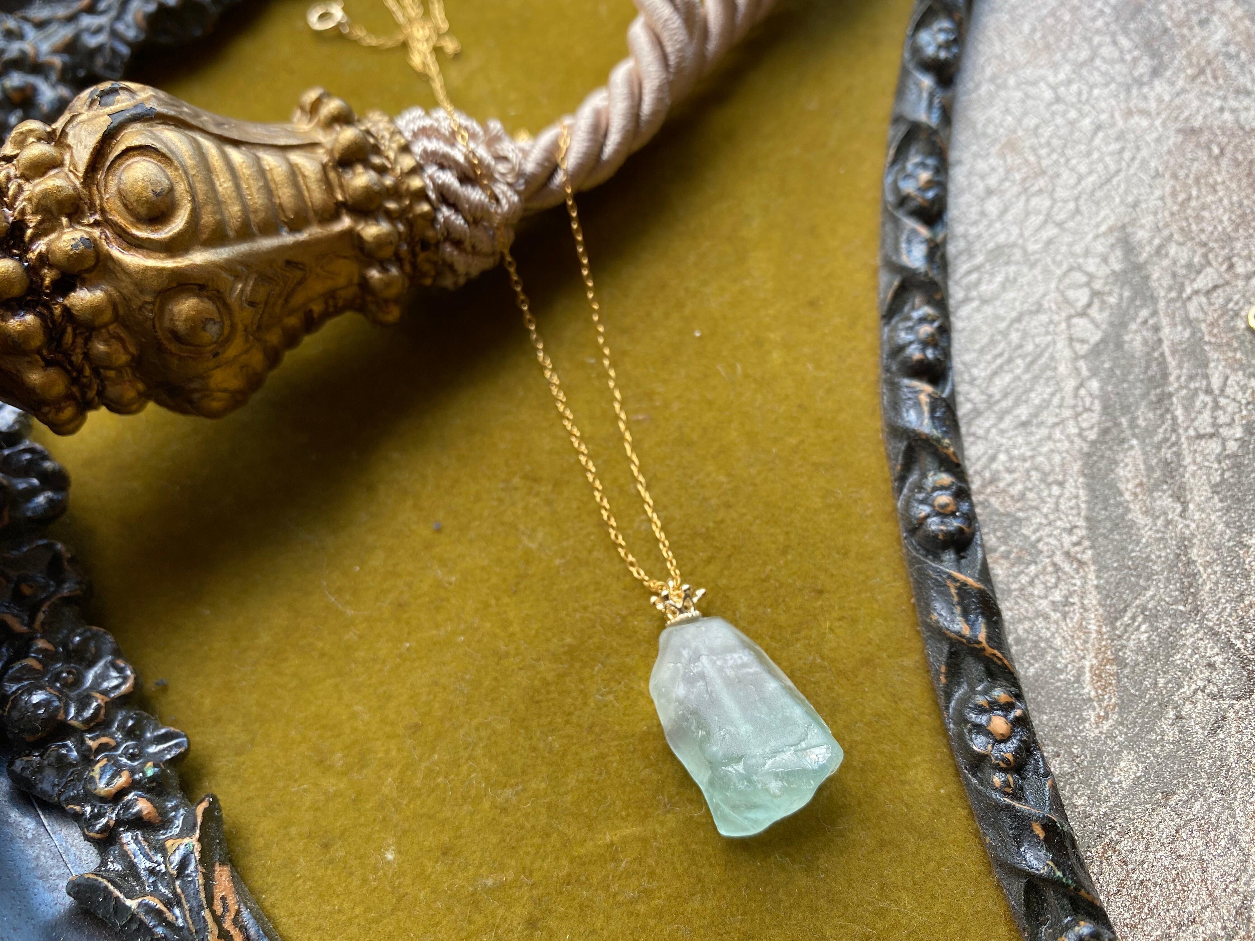 フローライトネックレス フローライトって、なんでも流れるようにうまく行くって言われる石。 チェーン46cm 素材:フローライト、K14gf