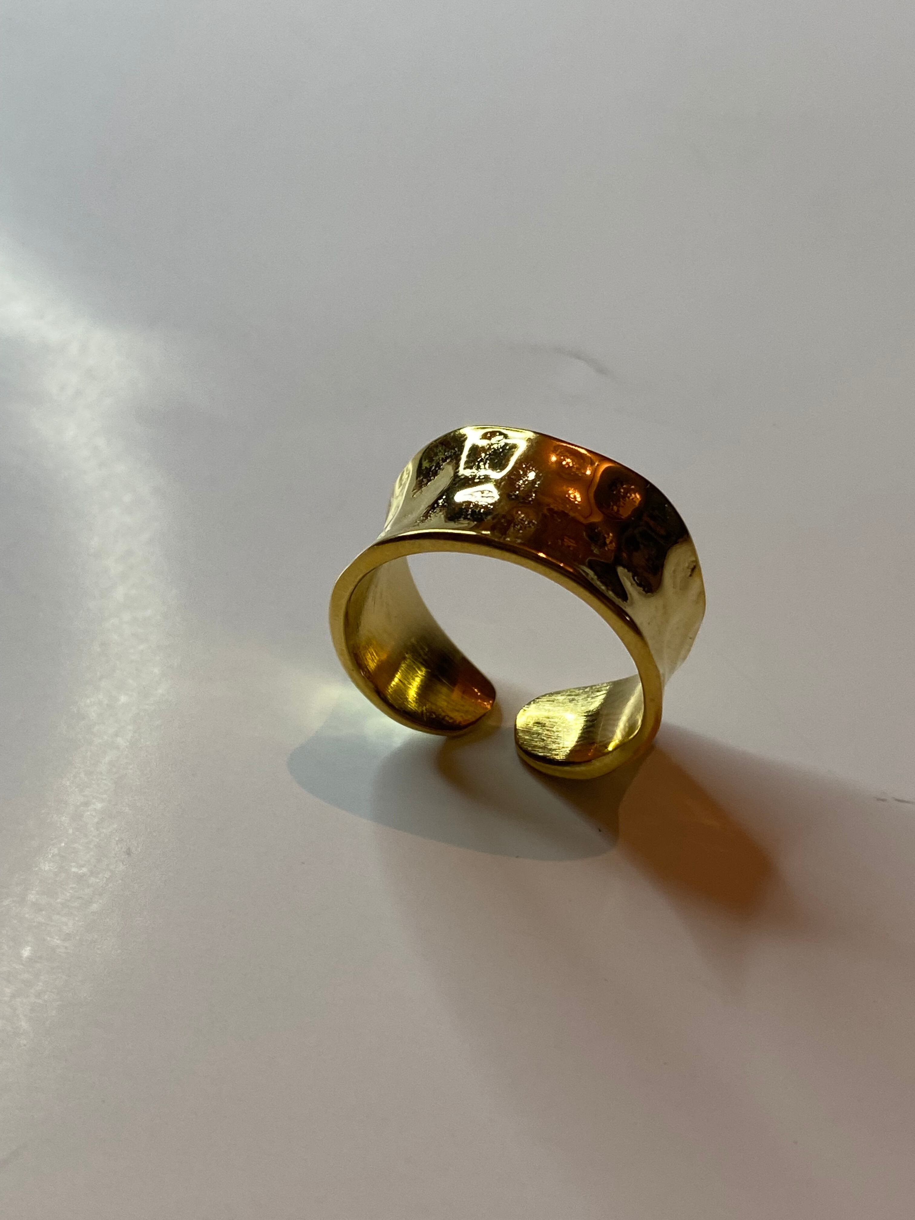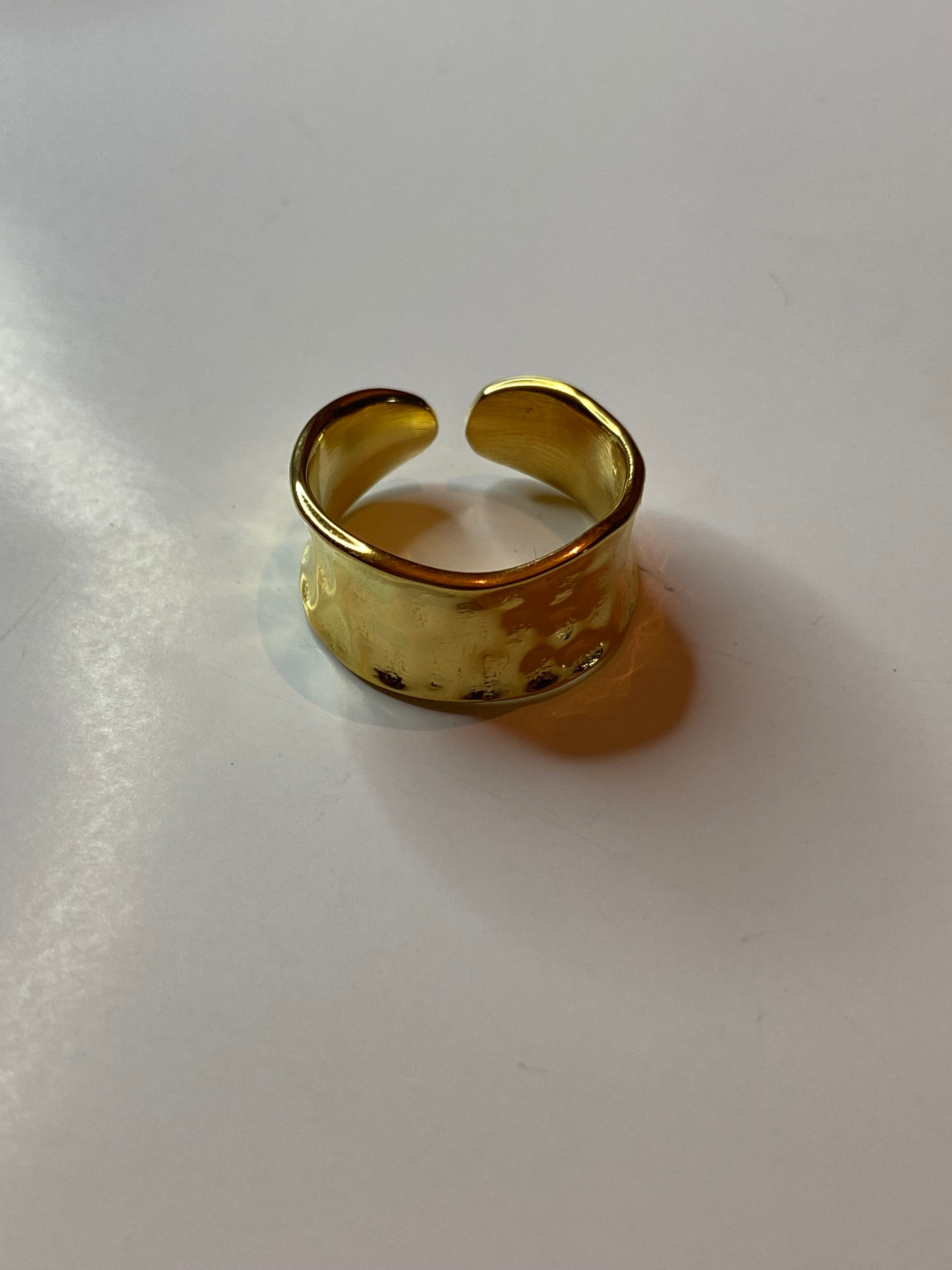 シンプルでありながら、存在感のあるゴールドリング。つるんとしたフォルムが手元を華やかに彩ります。サイズフリーなので、リングの合わせ方も自在。重ね付けを楽しんだり、他のアクセサリーとの相性も抜群です。