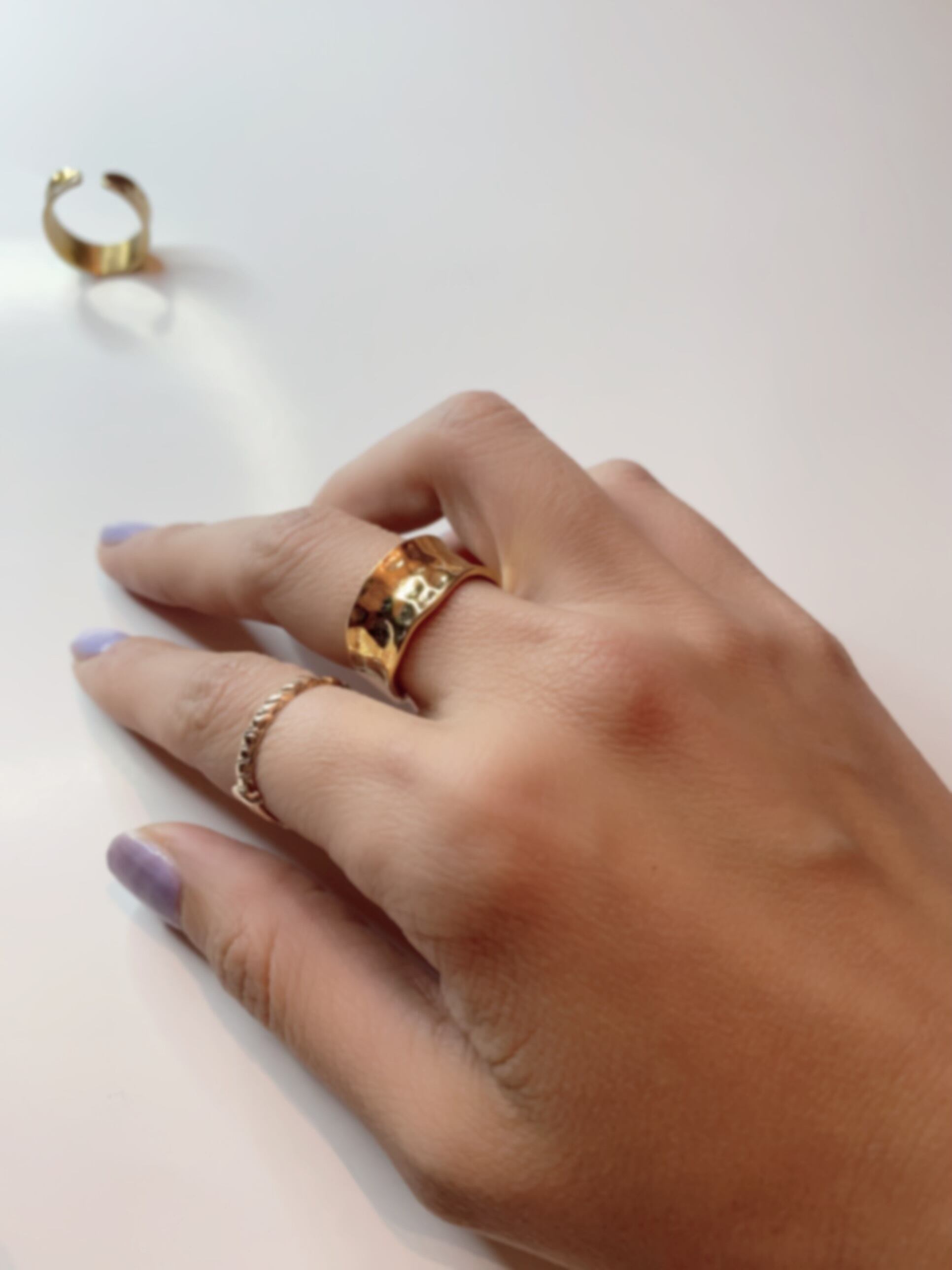 一つ一つのゴールドリングは、熟練の職人が一つ一つ丁寧に仕上げました。洗練されたデザインと細部までこだわった作りで、贅沢な輝きをお楽しみいただけます。