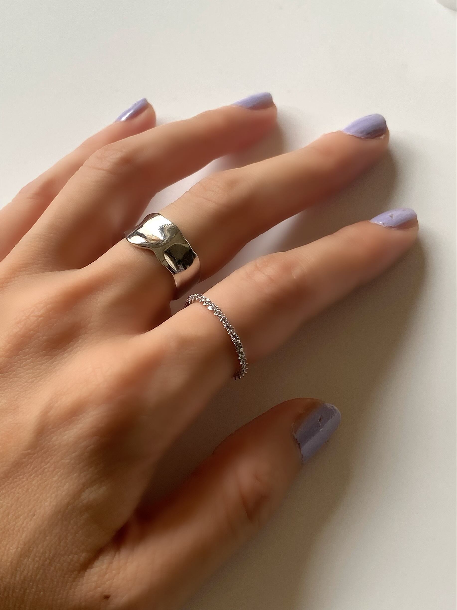 自由なサイズ調整が可能なので、指にぴったりフィットします。どんなコーディネートにも合わせやすく、存在感のあるアクセサリーとしてお楽しみいただけます。