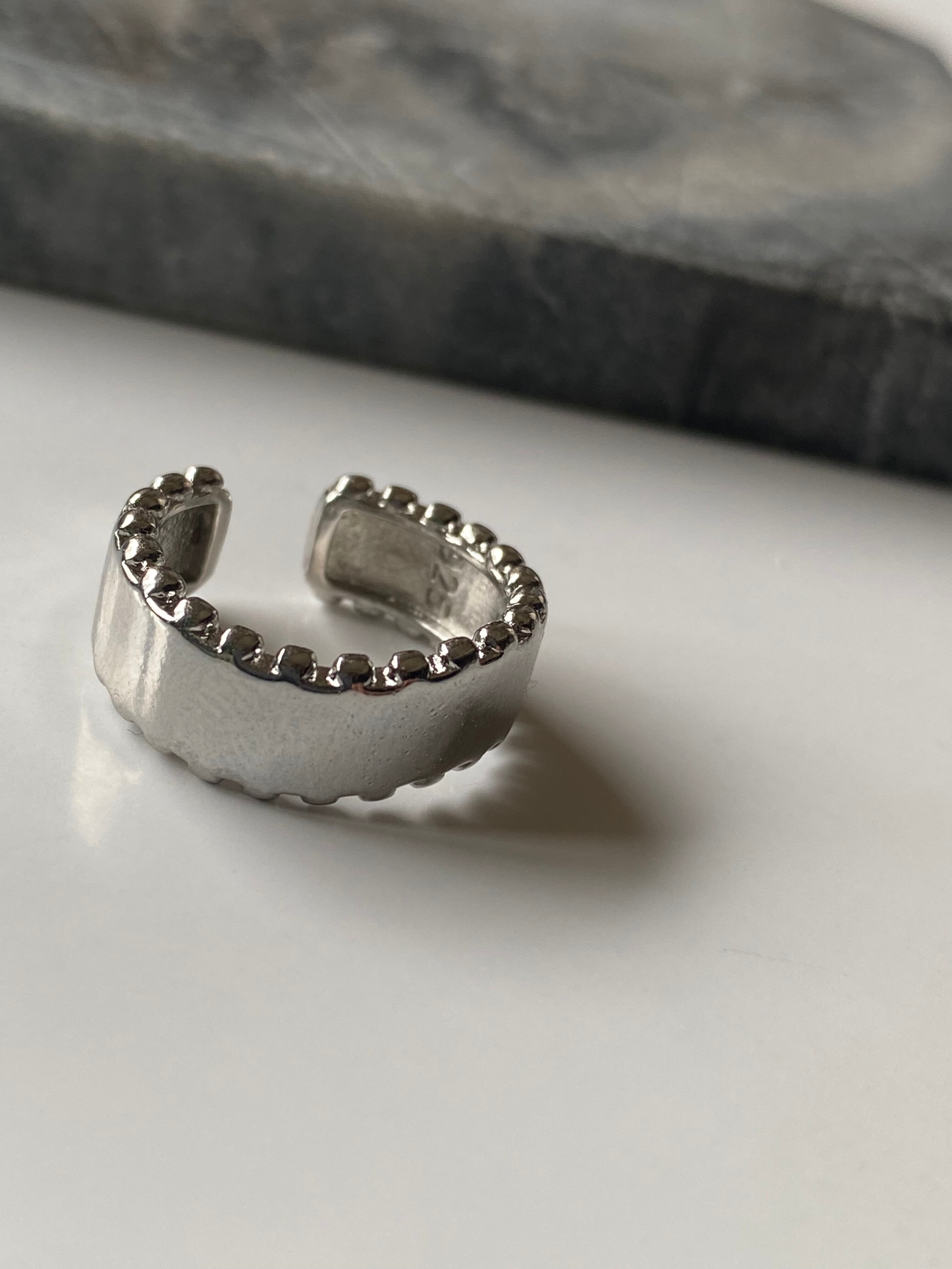 シンプルなデザインにぷつぷつ模様がキュートなシルバーリング。フリーサイズなので、どんな指にもピッタリフィットします。日常使いからパーティまで幅広いシーンで活躍します。