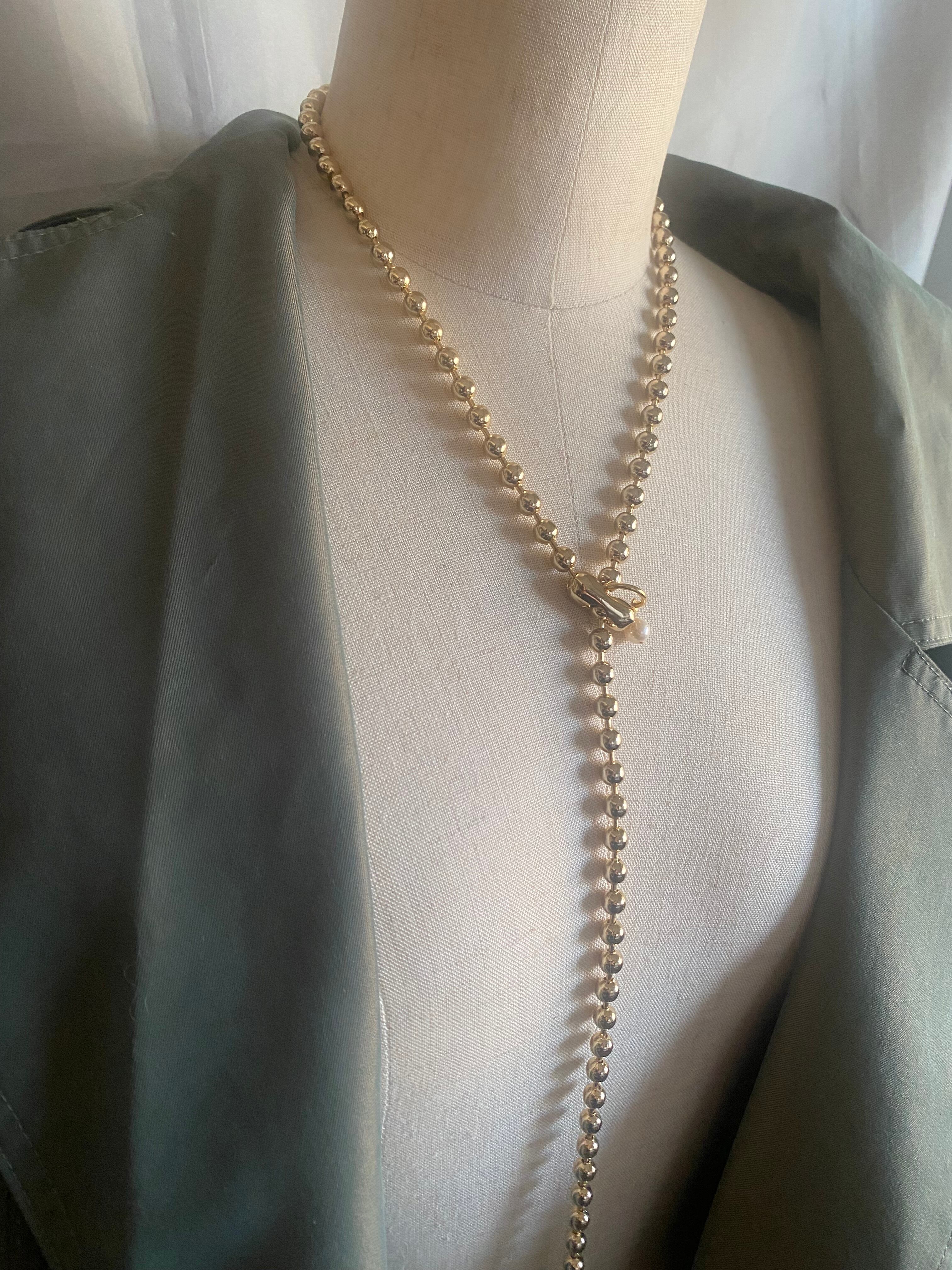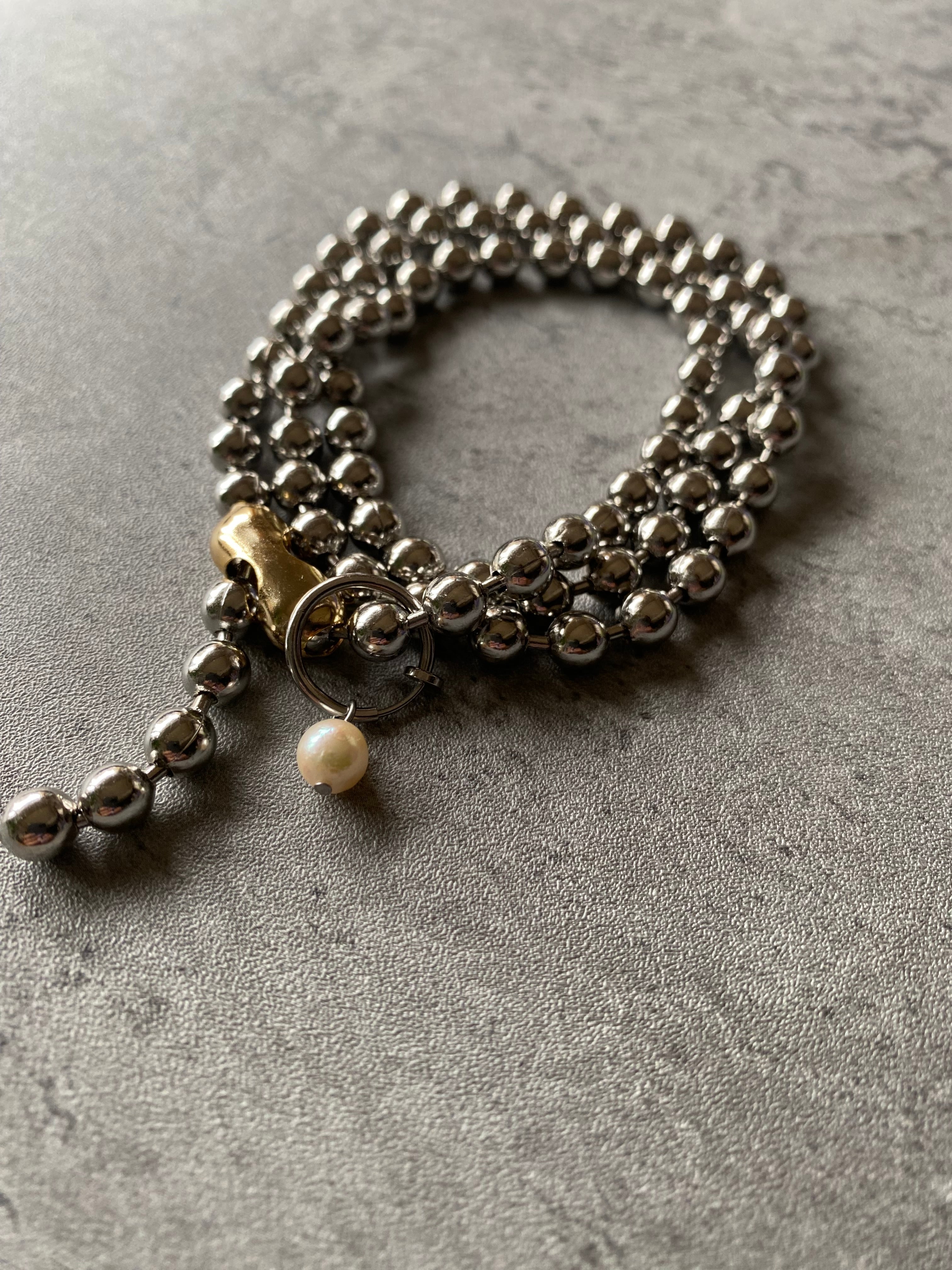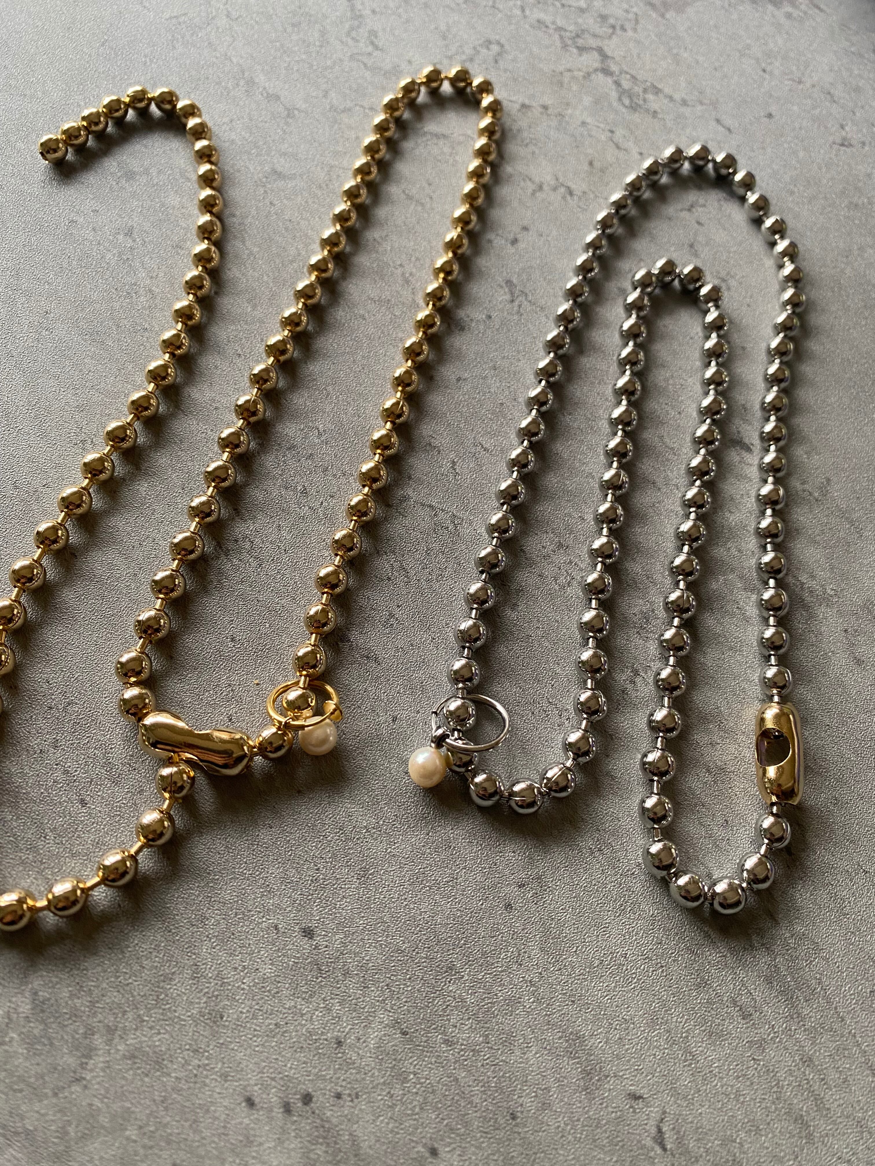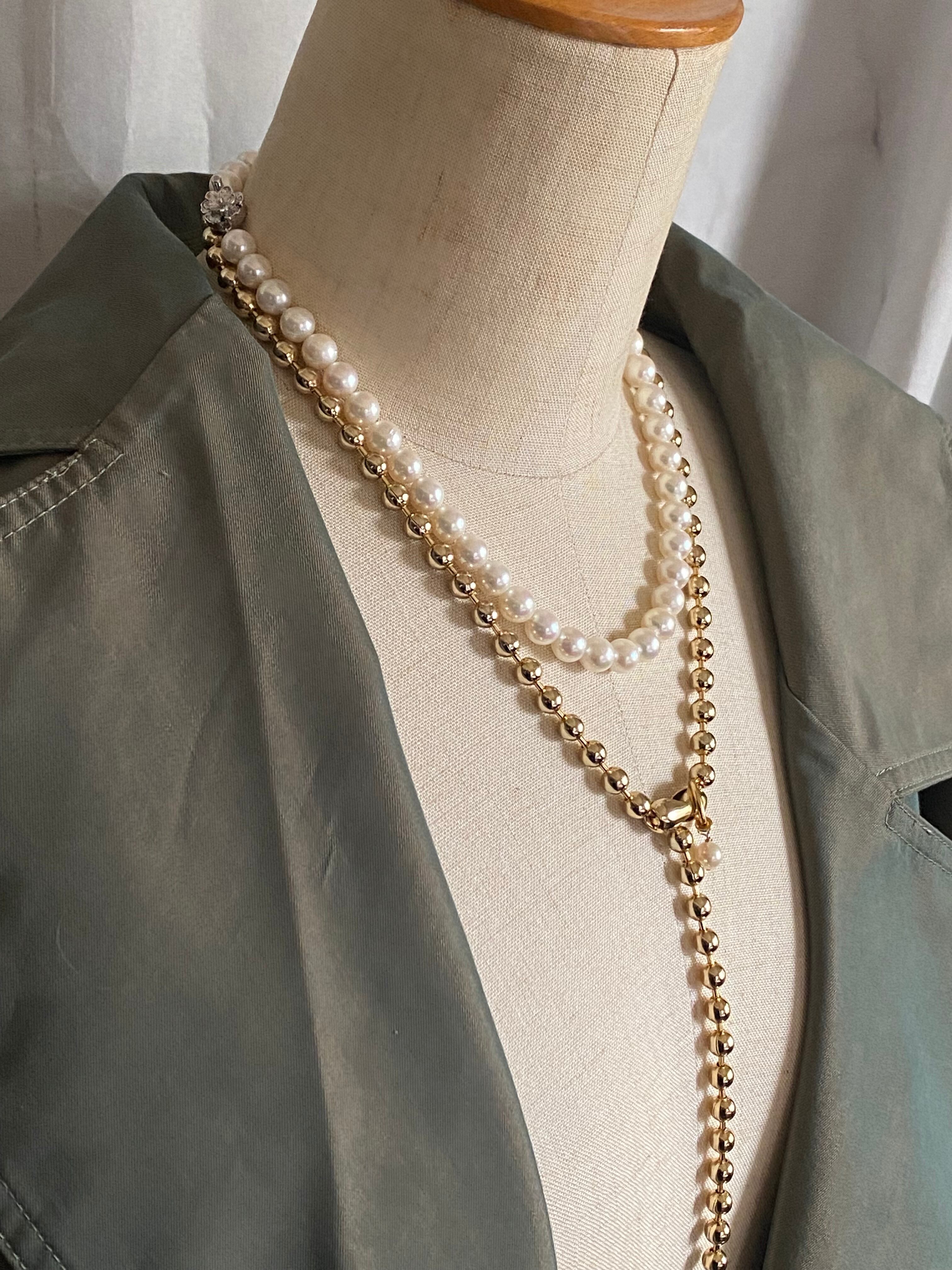 2WAYいや、もっと。ゴールド/シルバー ボールチェーンアコヤ真珠ネックレスブレスレット2WAY