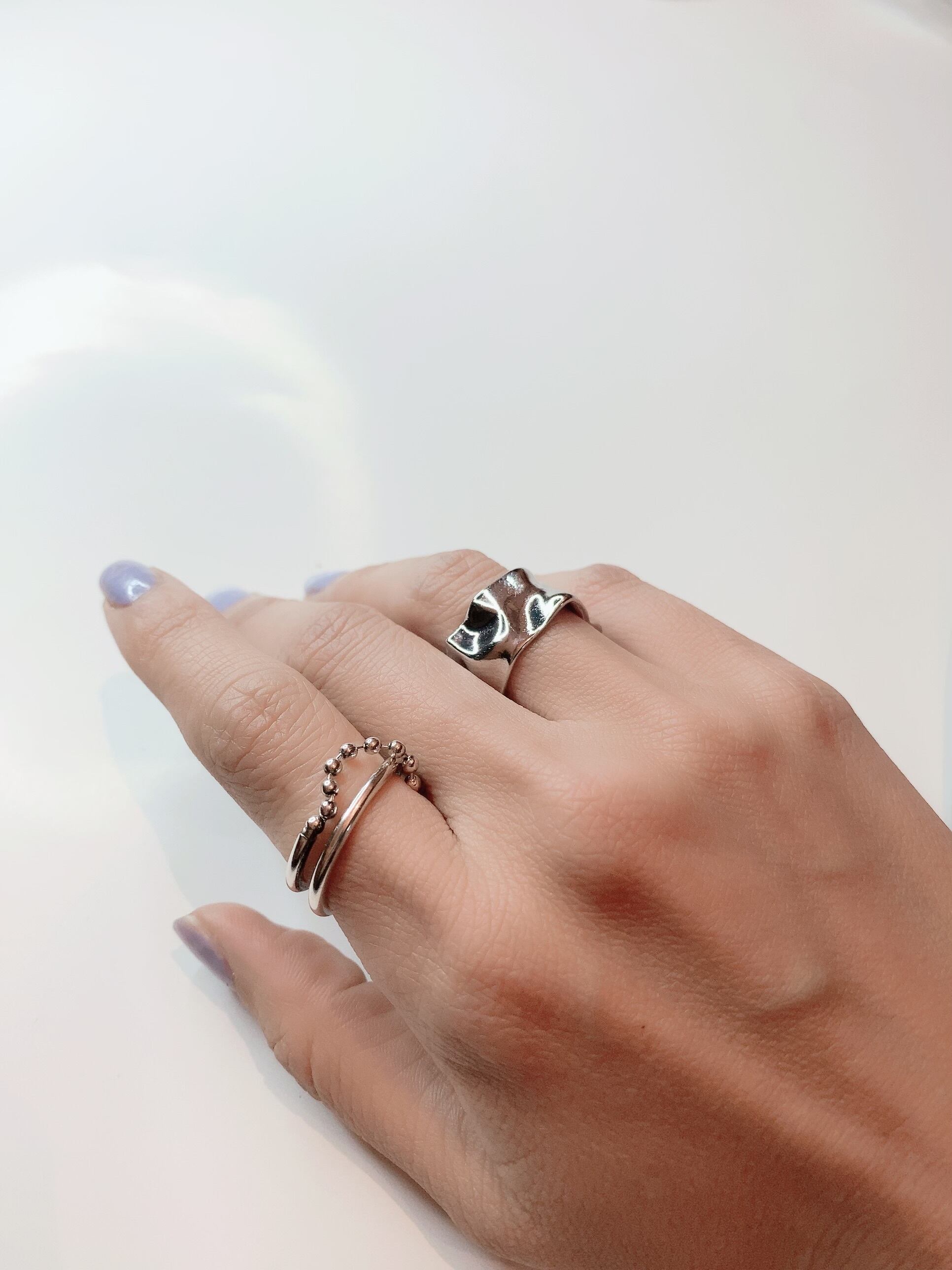チェーンで繋がるシルバー リング フリーサイズ